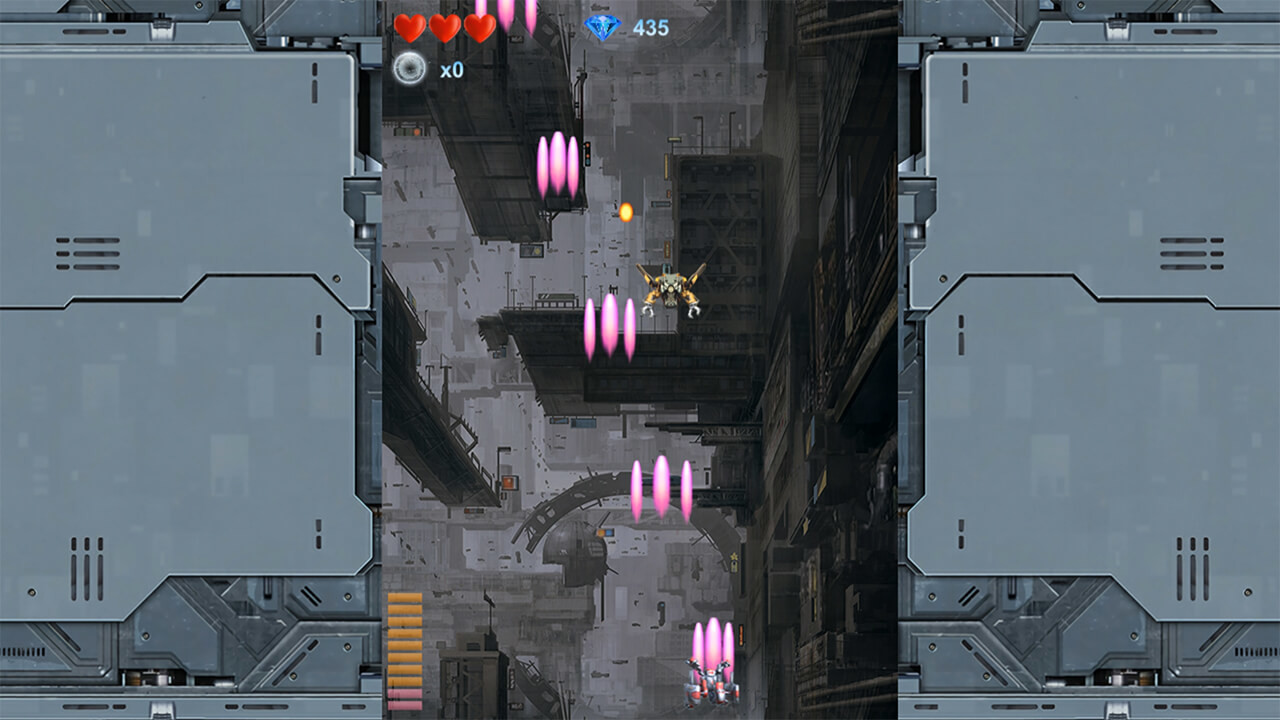 玩家击毁敌机可以获得钻石,钻石可以在补给站中升级主角的战机。可升级的种类有子弹的数量,子弹的威力,激光,防护罩,大范围攻击武器等等。