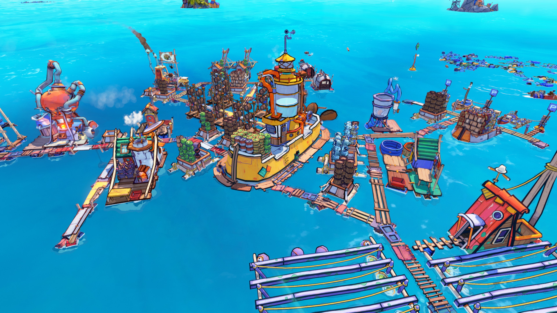 垃圾浮岛城镇生存游戏!努力从海面搜寻宝贵的垃圾,发展您的城市,同时尽力在这个丰富多彩的劫后世界中生存下来。(激活码:527199)