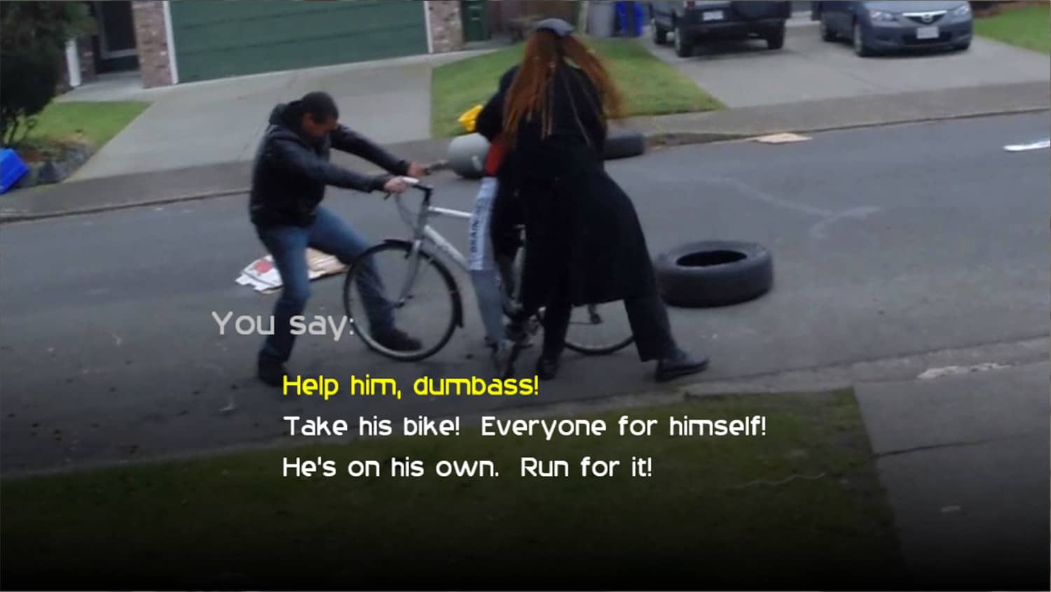 《按X不会死》是All Seeing Eye Games制作发行的一款真人电影互动式冒险游戏。一部令你无法忘怀的B级实时动作电影!你醒后,发现你所在的小镇陷入了一片混乱。每个人都像着了魔一样疯狂,只顾相互攻击!一条隐晦的消息成了生存秘笈——按X来免于一死! 在这部诙谐的实时动作互动电影中展开冒险,穿行街道、努力求生,找到你的女朋友,弄清事情的来龙去脉,并迅速逃离这座小镇!