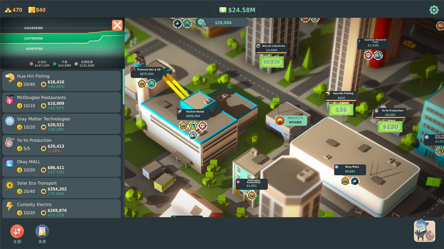 投资商业模拟游戏。 成为有史以来最富有的亿万富翁! 从合并的公司中建立您的金融帝国并增加您的资本。